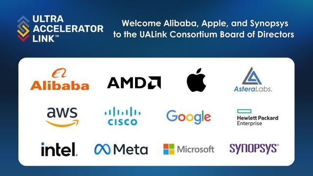 2024 年 10 月,由 AMD、Intel、谷歌、Meta、微软、AWS 等联合发起的 UALink 联盟就已悄然成型,随后又加入了苹果、阿里云、新思科技等,迅速扩张为一个囊括芯片设计、云服务、IP 供应链的庞大阵营。